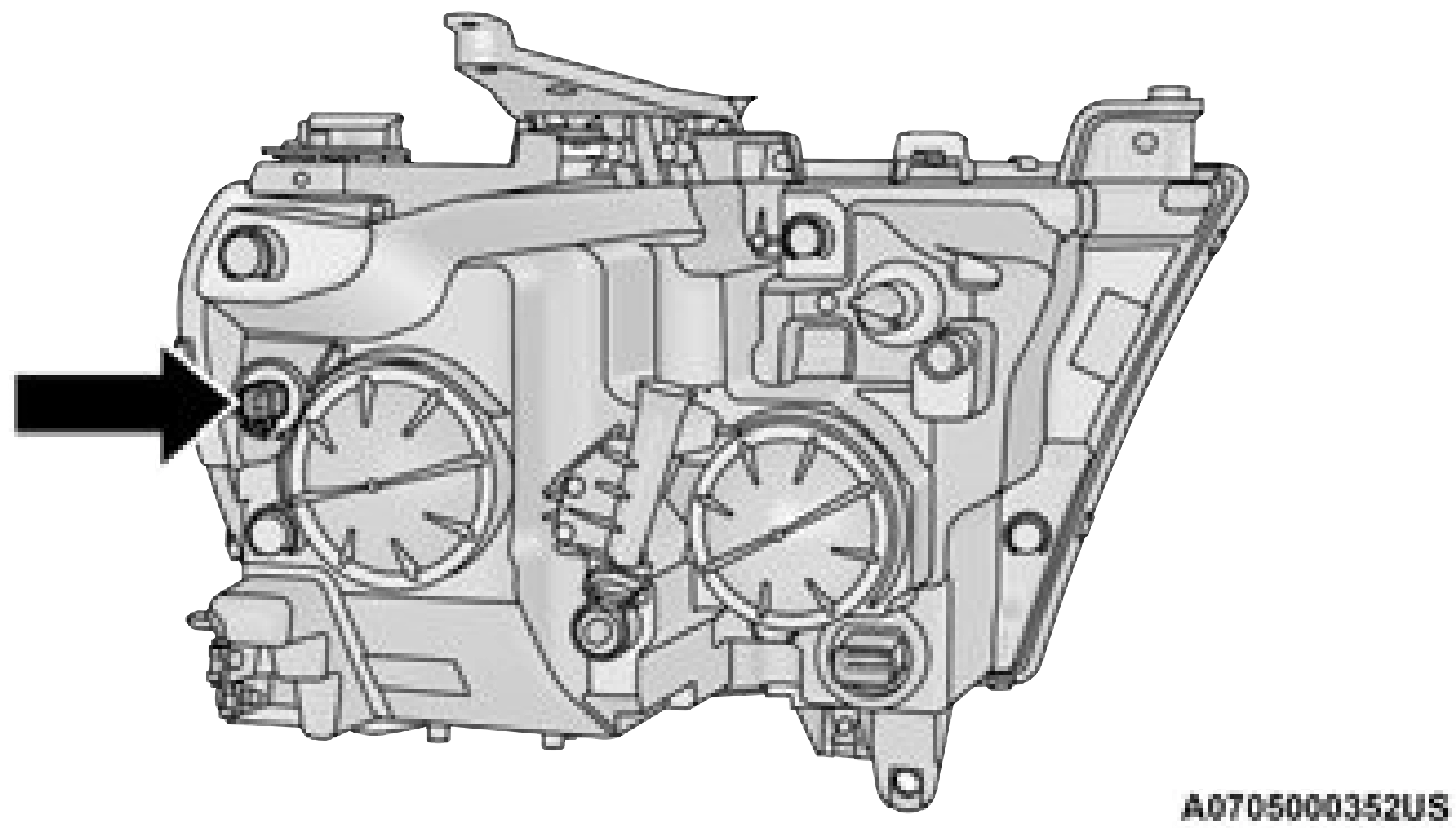The fuel/water separator filter housing is located inside the frame rail, behind the left front wheel. The best access to this water drain valve is from under the vehicle.