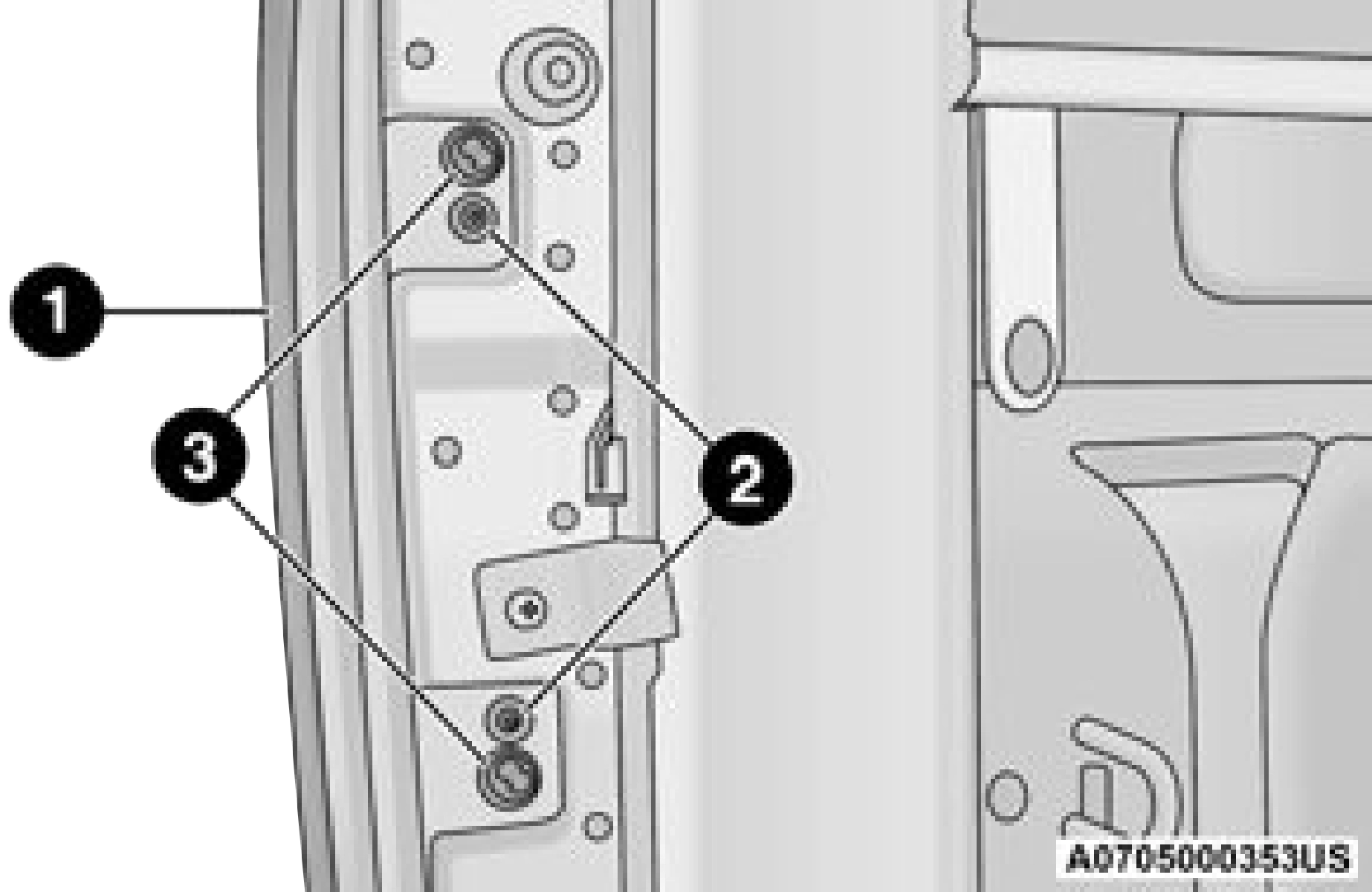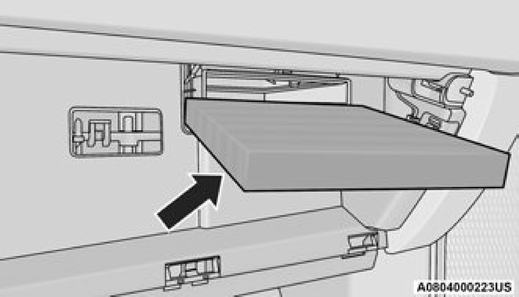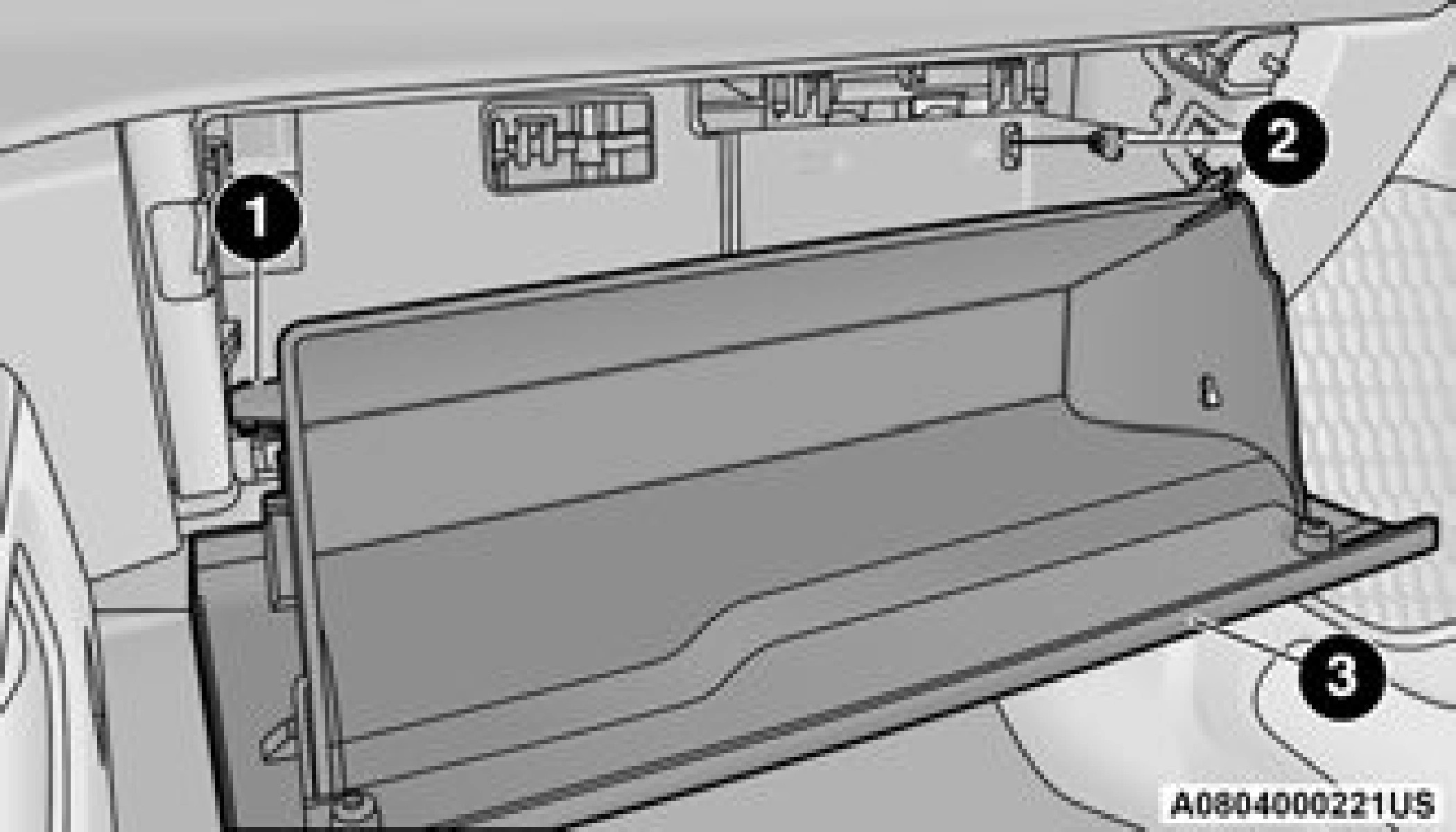 Ensure the glove compartment door hinges and glove compartment travel stops are fully engaged.