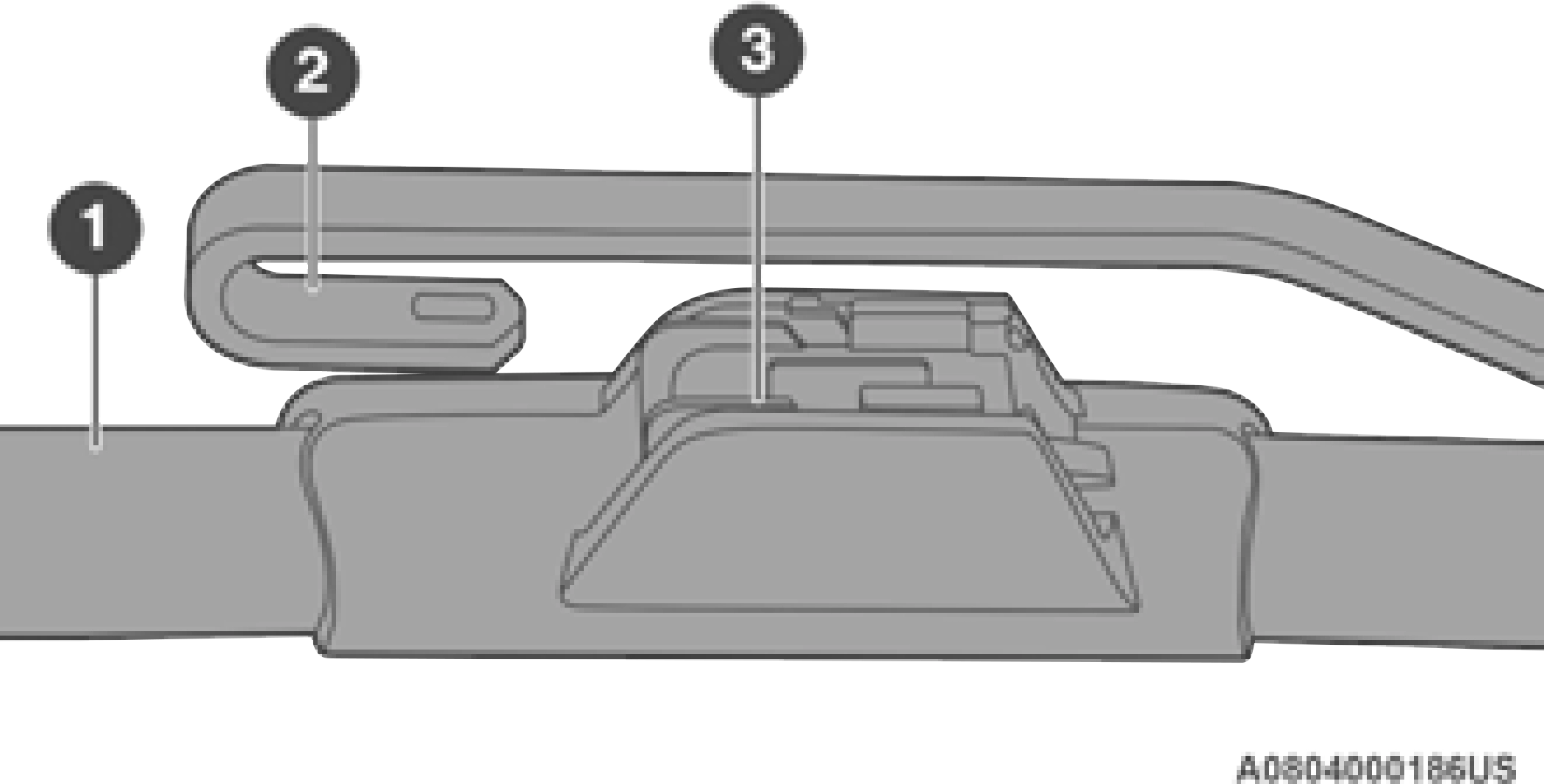 1 — Wiper Blade 2 — Wiper Arm 3 — Release Tab
