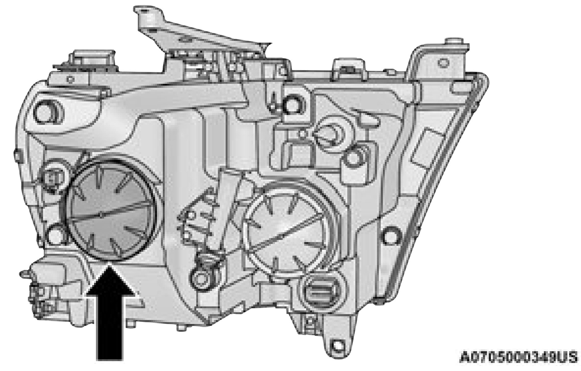 It may be necessary to remove/reposition Air Cleaner Assembly to access passenger side headlamp/side marker light bulbs.
