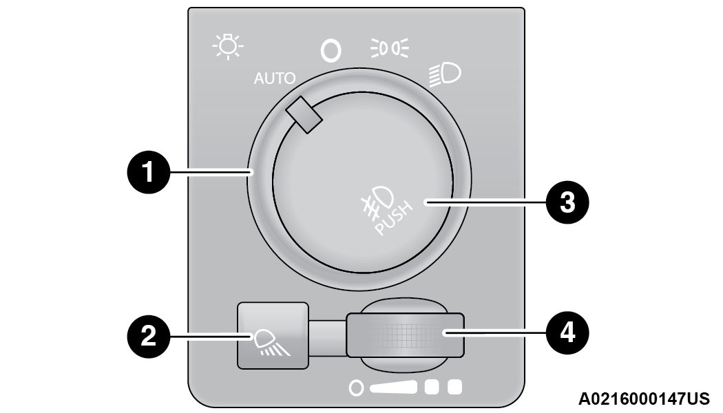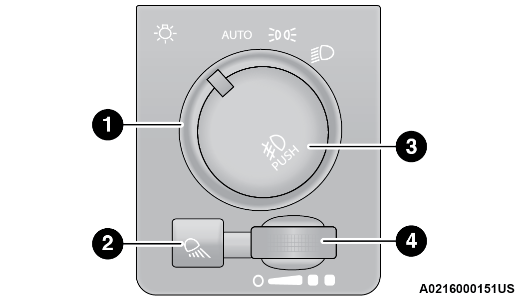 This system automatically turns the headlights on or off according to ambient light levels. To turn the system on, rotate the headlight switch to the AUTO position.
