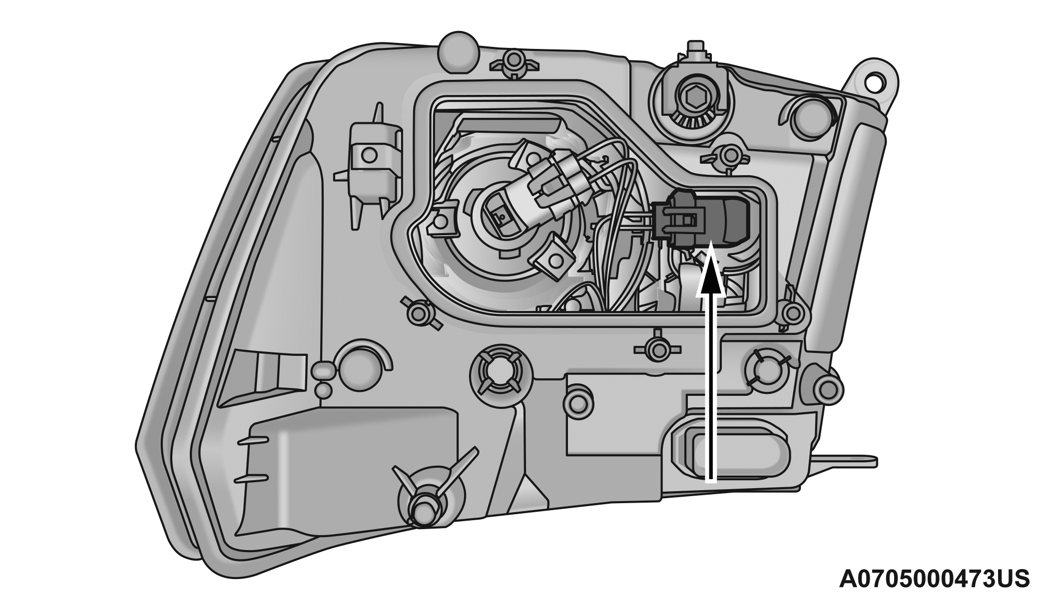 Disconnect the wiring harness connectors from the bulb socket.