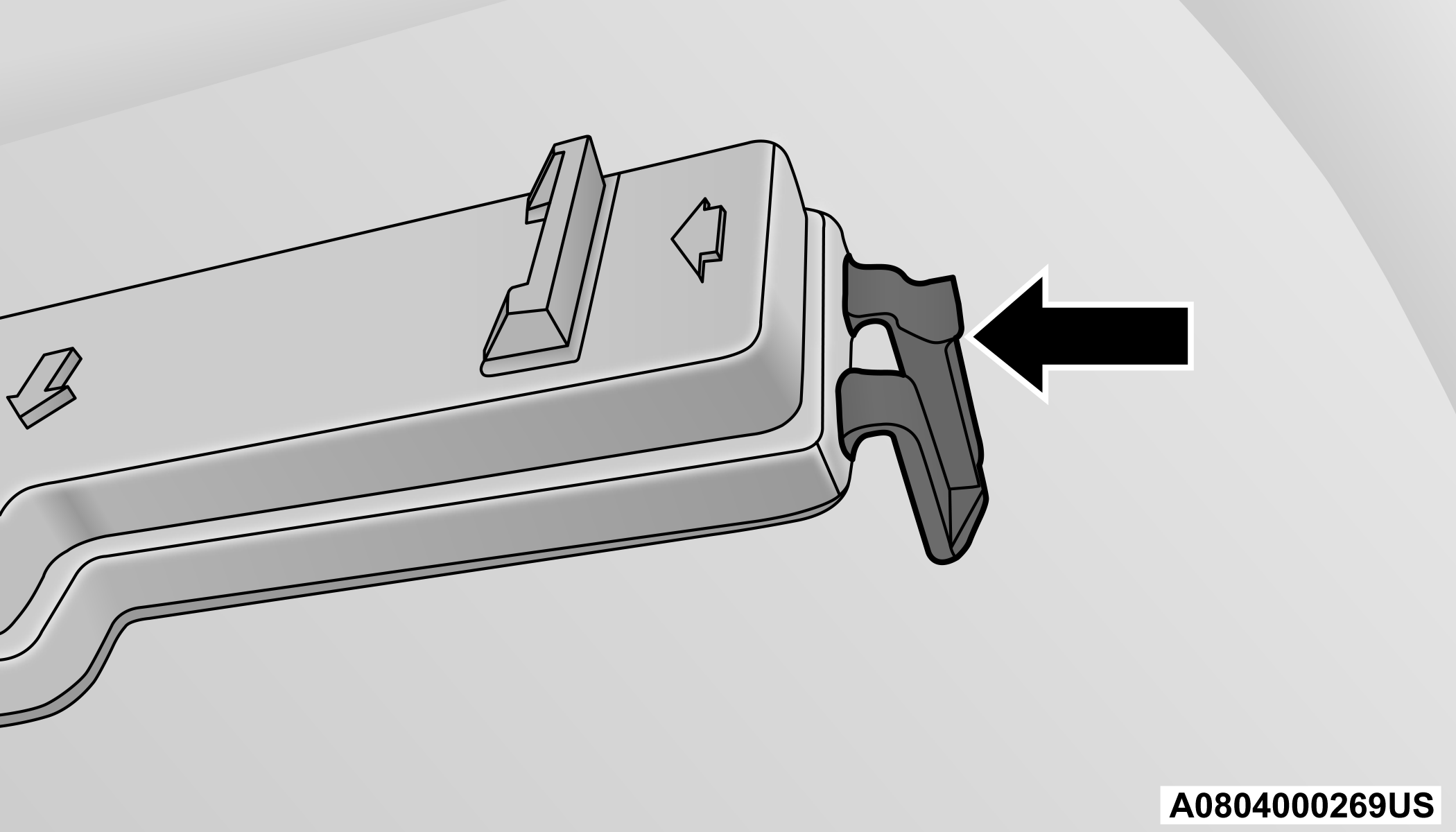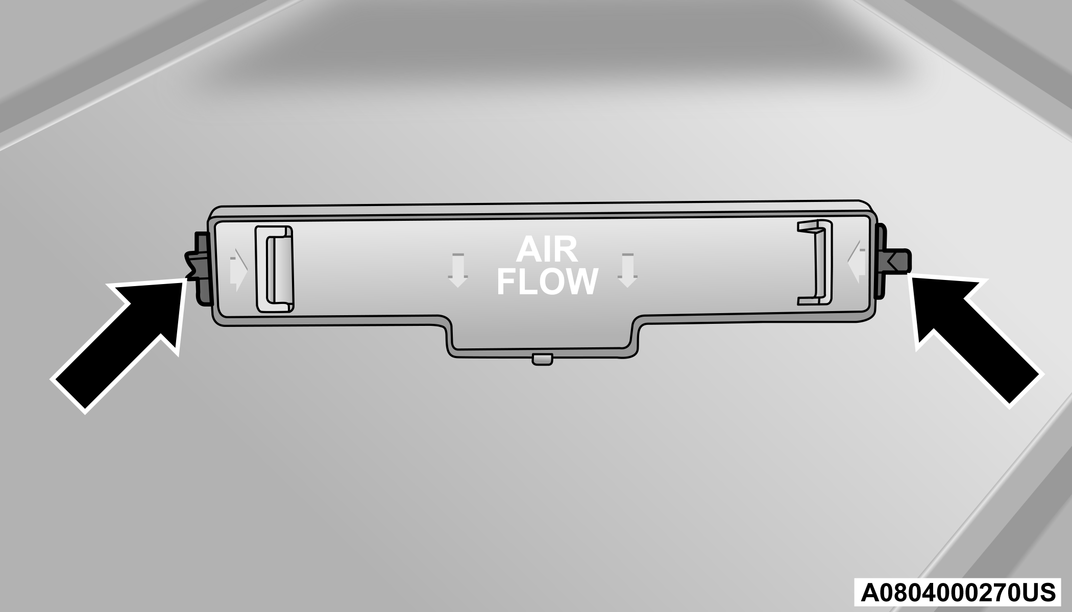 Install the cabin air filter with the arrow on the filter pointing toward the floor. When installing the filter cover, press on each end until you hear an audible click.