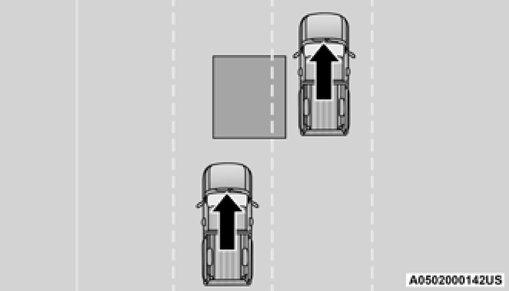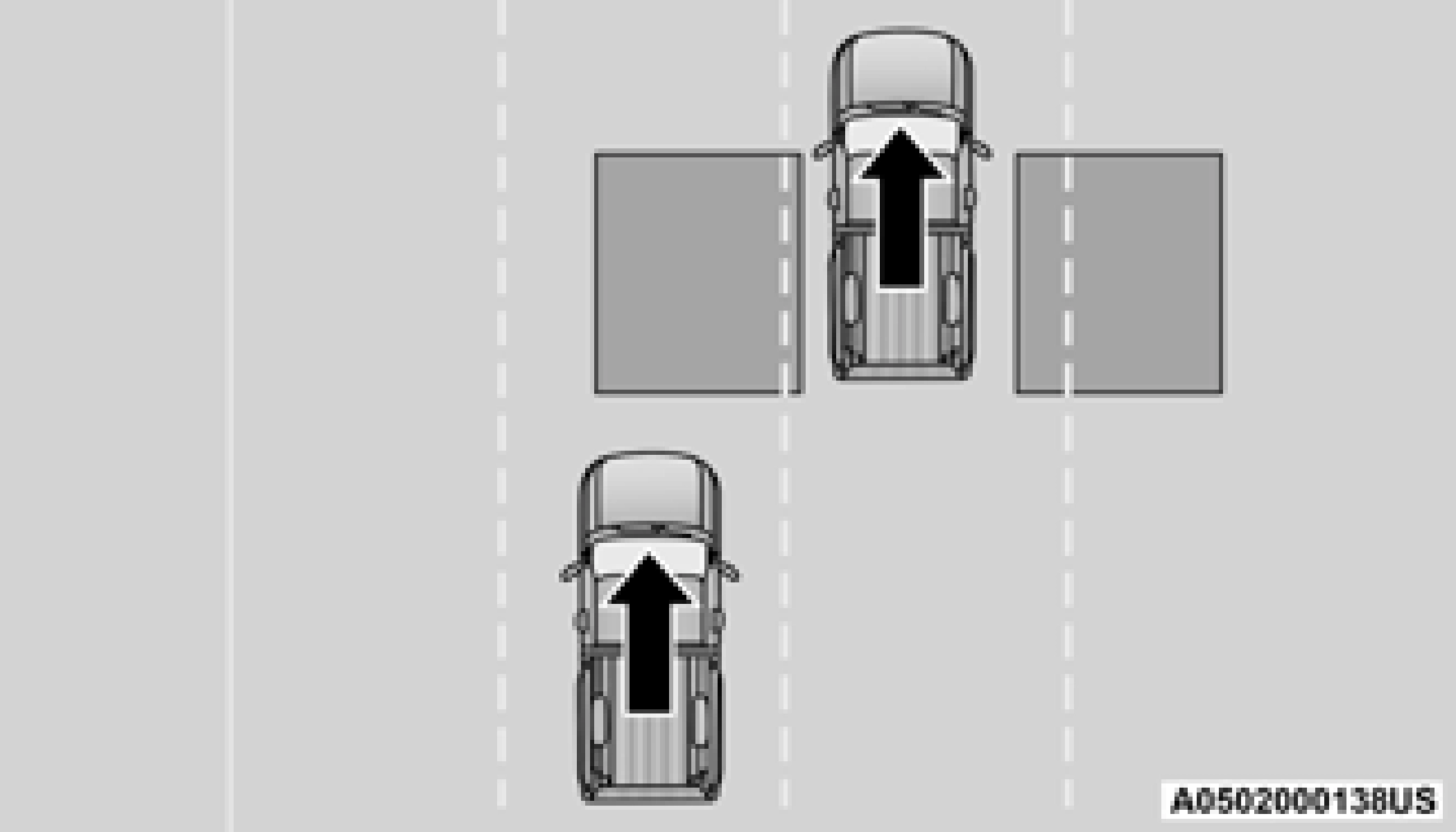 If you pass another vehicle slowly with a relative speed less than 15 mph (24 km/h) and the vehicle remains in the blind spot for approximately 1.5 seconds, the warning light will be illuminated. If the difference in speed between the two vehicles is greater than