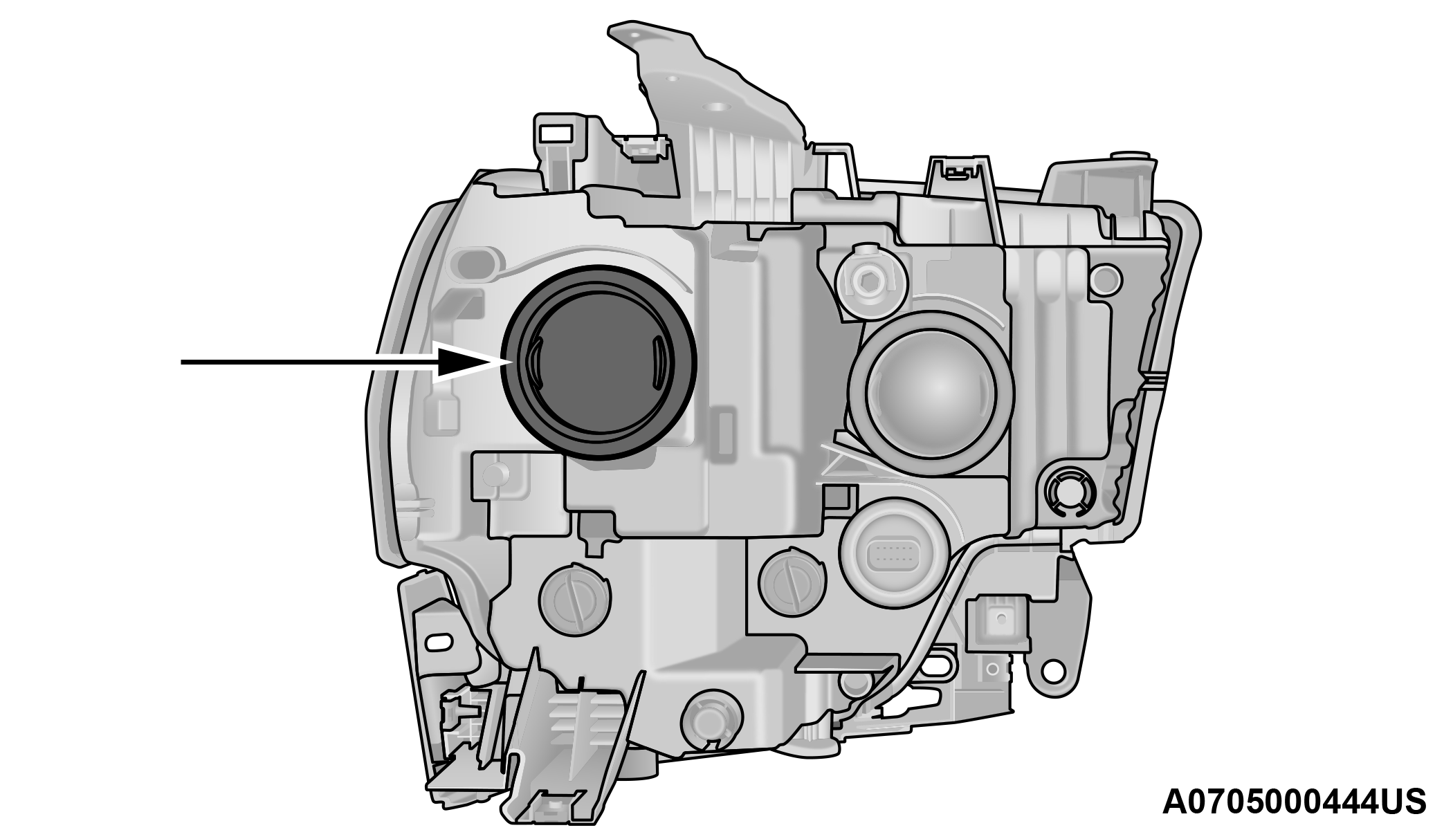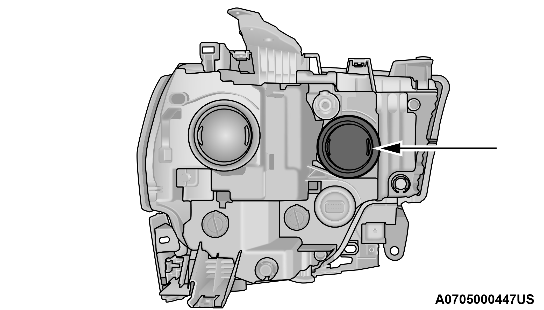 Reach behind the headlamp and disengage the access cover by rotating counterclockwise.