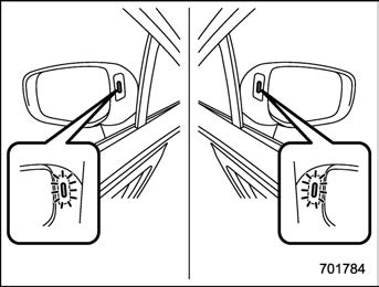 . If the driver operates the turn signal lever in the direction which the BSD/RCTA approach indicator light is illuminating, the corresponding BSD/RCTA approach indi- cator light will flash.