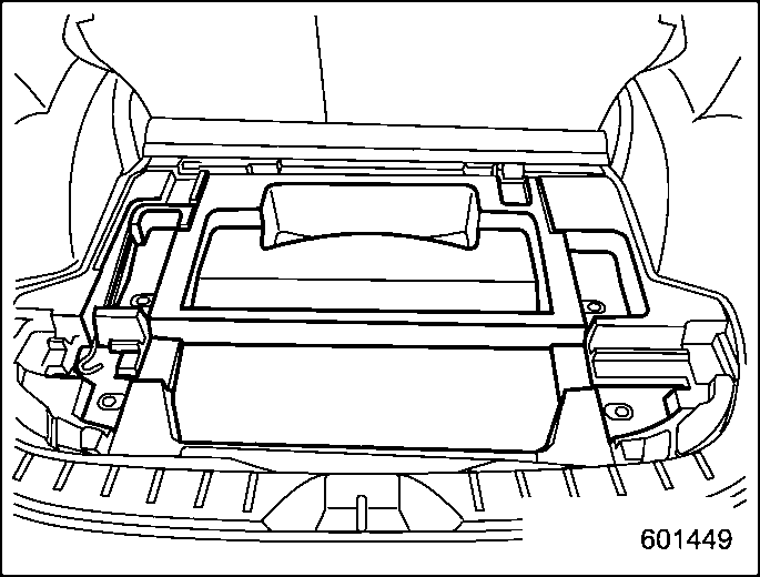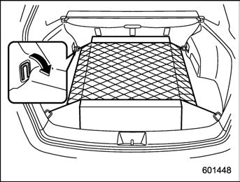 The storage compartment is located under the floor of the cargo area and can be used to store small items. Pull the strap to open the center part of the cargo floor lid, and then remove the lid.