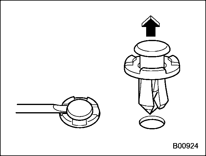 Pull out the center portion of the clip using a flat-head screwdriver as shown in the illustration.