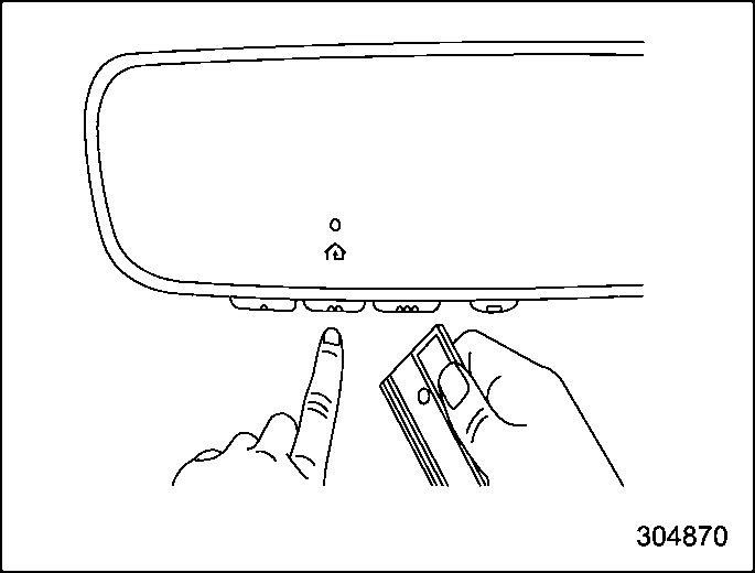 Press and hold the two outer HomeLink buttons for at least 10 seconds. The LED indicator will change from continuously lit to rapidly flashing. Release both buttons. Do not hold for longer than 20 seconds. HomeLink is now ready to be programmed at any time beginning with “Programming a New HomeLink Button” - step 1.