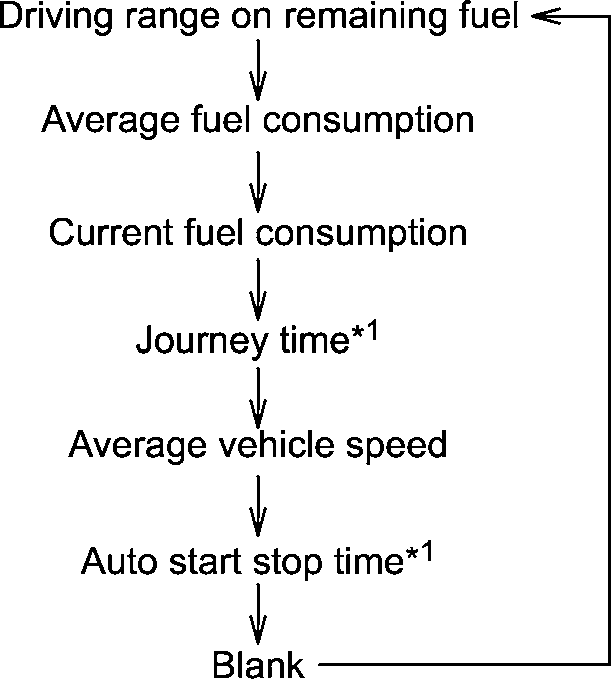 Pressing the INFO button on the steering wheel switches changes the display to the following sequence.