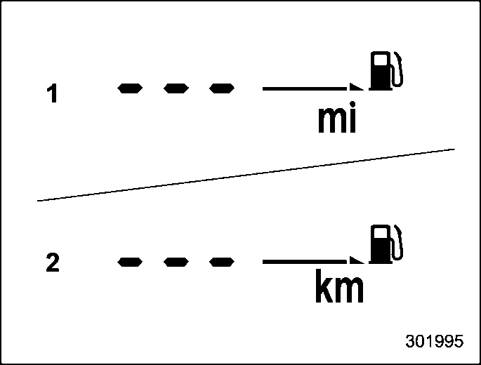 The driving range indicates the distance that can be driven taking into account the amount of fuel remaining in the tank and the average rate of fuel consumption.