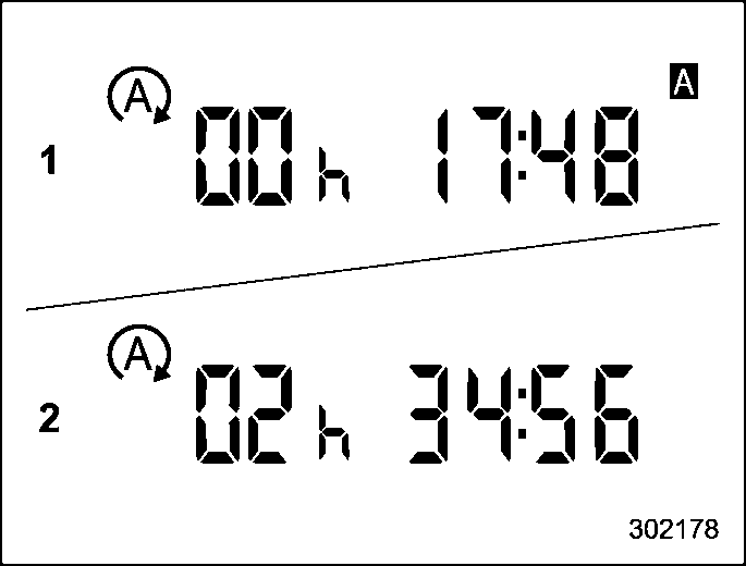 Total time in conjunction with the trip meter: Displays the total time that the engine was stopped by the Auto Start Stop system, from the last time the currently displayed trip meter was reset until the current time. By pressing the TRIP RESET switch, you can toggle the display between the time the engine was stopped for trip A