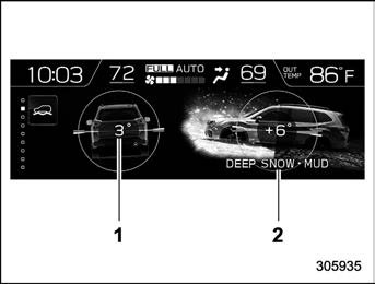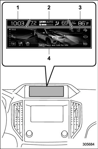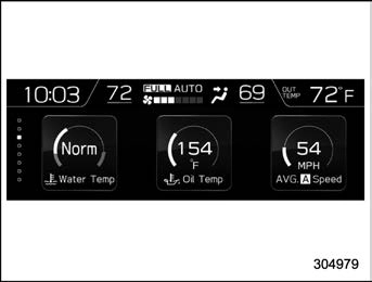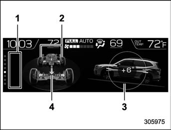 This screen displays the driving status of the vehicle and the operation status func- tions. For functions that are operating, the indicator will illuminate or flash.