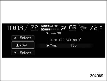 When the INFO button is operated after the ignition switch is turned to the “ON” or “ACC” position, the screen will be restored. The screen will be restored with the basic screen that was displayed when the screen was turned off.