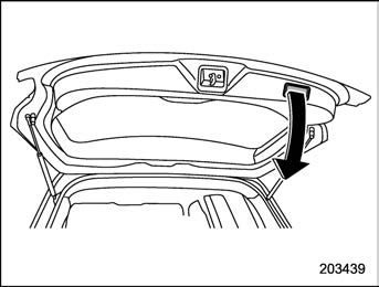 Pull down the rear gate when the rear gate is opened. The rear gate will close auto- matically.