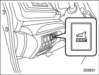 Even if any of the power rear gate switches are pressed and held while the memory switch is in the OFF status, you can stop it at the registered height by pressing the memory switch to select the ON status before the rear gate reaches the registered