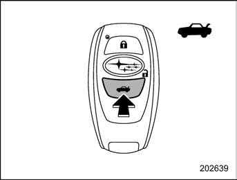 Carry the access key fob, and press the power rear gate lock button. All doors, the rear gate and the fuel lid are locked, and the rear gate will be closed. Also, the hazard warning flashers will flash once, and an electronic chirp will sound once.