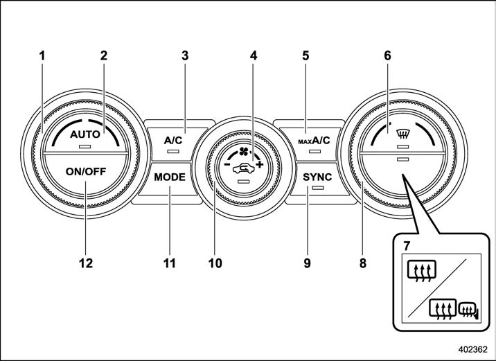 ON/OFF button (Refer to “Automatic climate control operation” P265.)