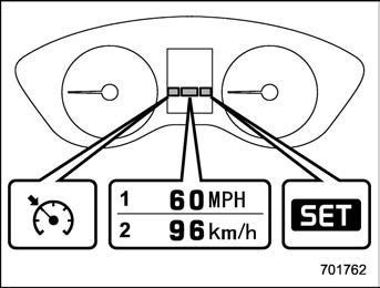 At this time, the cruise control set indicator light is illuminated in the combination meter. The set speed will be shown on the combination meter. You can change the displayed unit by operating the combi- nation meter display.