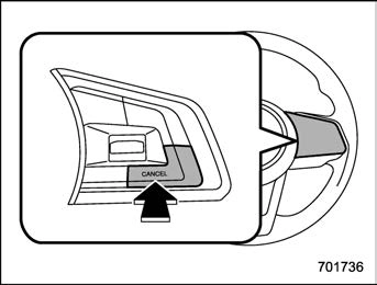 The cruise control set indicator light in the combination meter turns off when the cruise control is canceled.