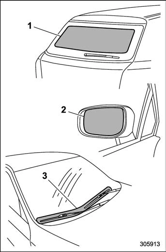outside mirrors have been cleared and the windshield blade rubbers have been deiced completely before that time, press the control switch to turn them off.
