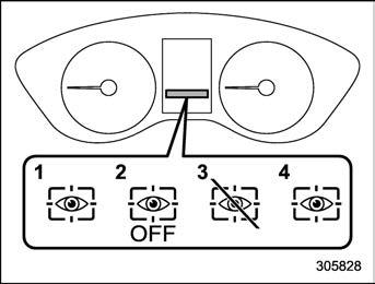 When the Driver Monitoring System OFF switch is pressed, the Driver Monitoring System turns OFF. When the Driver Monitoring System is turned OFF, the Driver Monitoring System OFF indicator on the combination meter display will illuminate. To turn the Driver Monitoring System ON, press the Driver Monitoring System OFF switch again.