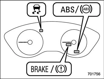 If a malfunction occurs in the EBD system, the system stops working and the following warning lights illuminate simultaneously.
