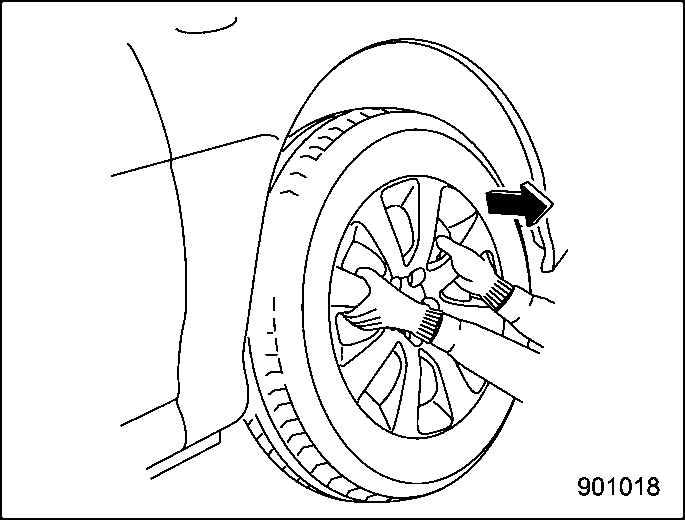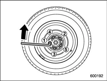 For the wheel nut tightening torque, refer to “Tires” P501. Never use your foot on the wheel nut wrench or a pipe extension on the wrench because you may exceed the specified torque. Have the wheel nut torque checked at the nearest automotive service facility.