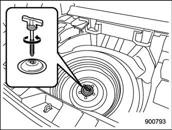 Store the flat tire in the spare tire compartment. Install with the support holder facing upward and secure the flat tire by firmly tightening the attaching bolt.a sharp object).