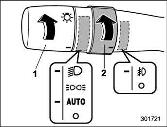 The headlight switch is in the “ ” position with the low beam mode selected.
