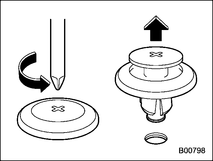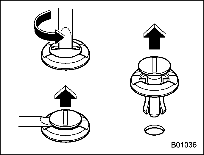 Pull out the center portion of the clip using a flat-head screwdriver as shown in the illustration.