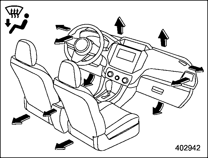 foot outlets and both side outlets of the instrument panel (Refer to “Defrosting”