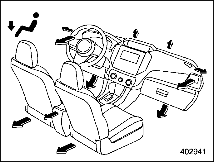 Defrost: Windshield defroster outlets and both side outlets of the instrument panel (Refer to “Defrosting” P269.)