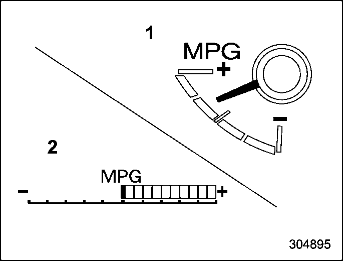 The ECO gauge shows the difference between the current rate of fuel consump- tion and the average rate of fuel consump- tion since the trip meter was last reset.