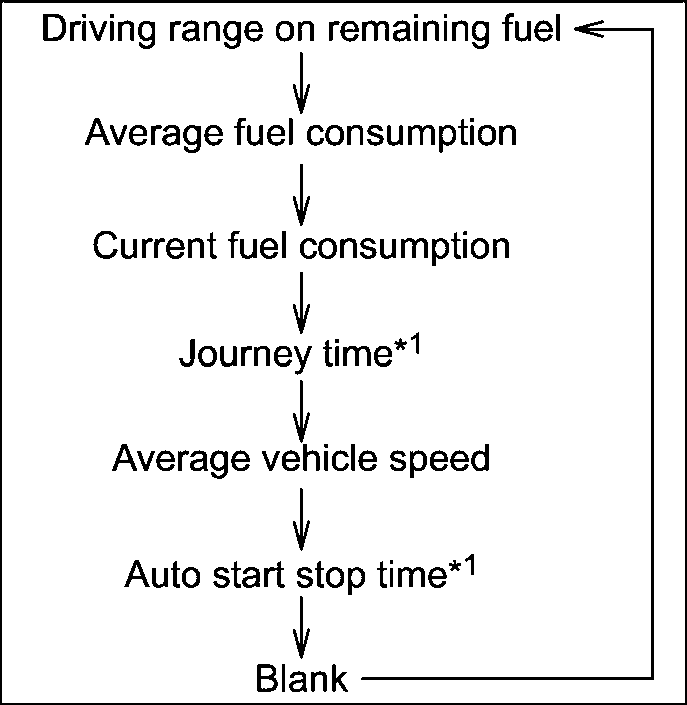 Pressing the INFO button on the steering wheel switches changes the display to the following sequence.