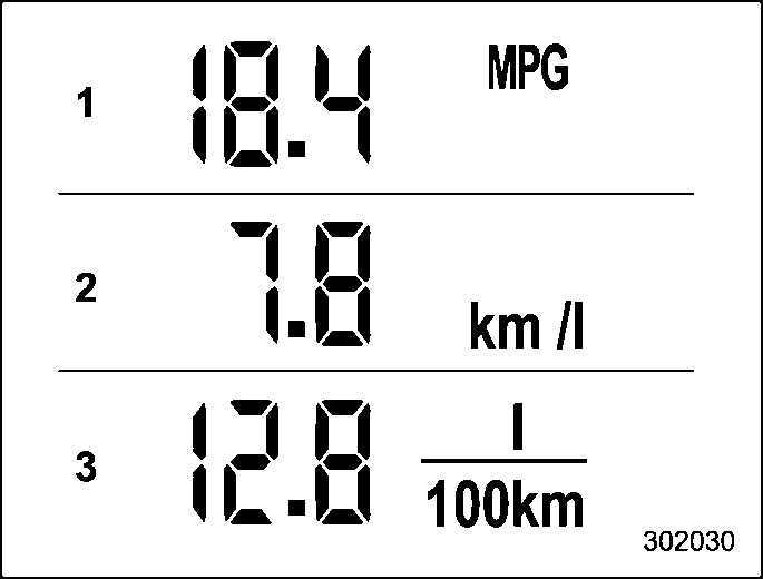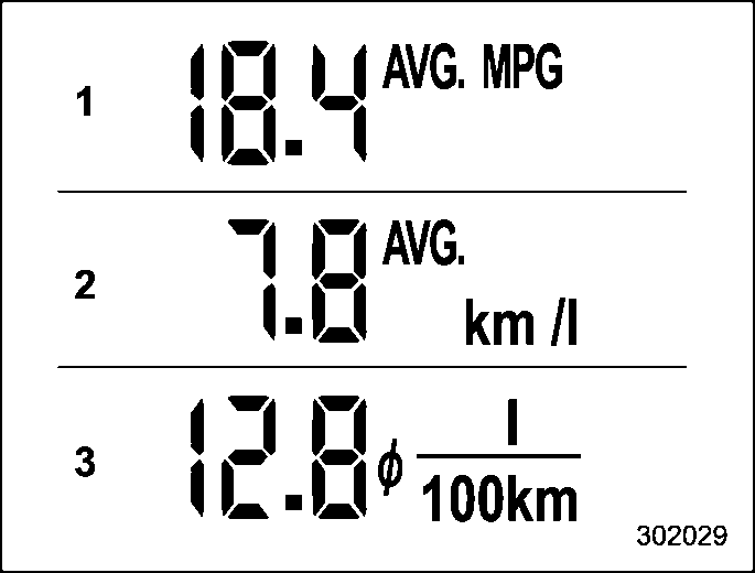 This display shows the average rate of fuel consumption since the trip meter was last reset.