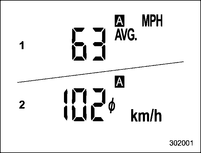 This display shows the average vehicle speed since the trip meter was last reset. Pressing the TRIP RESET switch toggles the display between the average vehicle