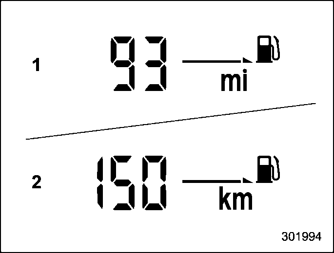 If the driving range is shown as “ ”, there is only a tiny amount of fuel left in the tank.