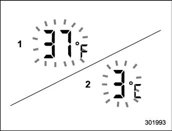 When the outside temperature drops to a certain temperature or lower, the tempera- ture indication flashes for 5 seconds to show that the road surface may be frozen.