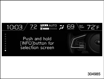 Press the INFO button on the steering wheel to switch the item displayed on the basic screen. You can operate the items on the setting screen by using the “