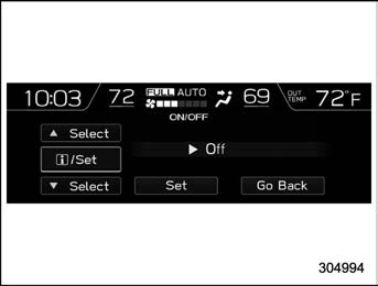 When operating the climate control sys- tem, the basic screen switches to the climate control screen. For details about climate control operation, refer to “Climate