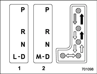 The select lever has four positions, “P”, “R”, “N”, “D” and it also has an “L” or “M” gate.