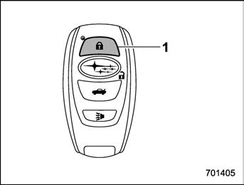 An access key fob can be used as the remote engine start transmitter. Operate the lock button to start or stop the engine as follows.