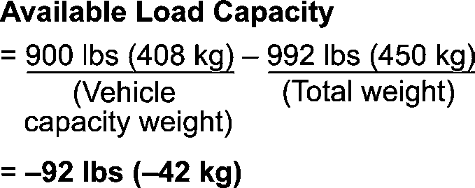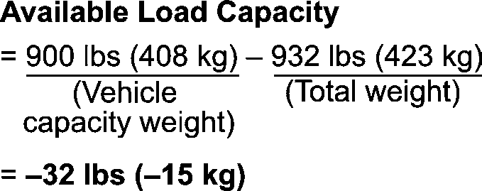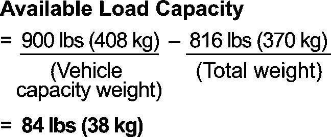 Vehicle capacity weight of the ve- hicle is 900 lbs (408 kg), which is