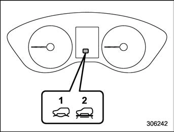 This light illuminates when the Steering Responsive Headlight OFF switch is pressed to deactivate the Steering Re- sponsive Headlight. Also, the light flashes when a malfunction occurs in the Steering Responsive Headlight. Refer to “Steering Responsive Headlight (SRH)” P237.