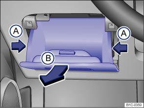 - Press the sides of the storage compartment in slightly (Ⓐ arrows) while pulling back firmly (Ⓑ arrow).