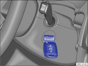 Fig. 102 Hold the remote control vehicle key to the right of the steering column: Emergency starting feature.