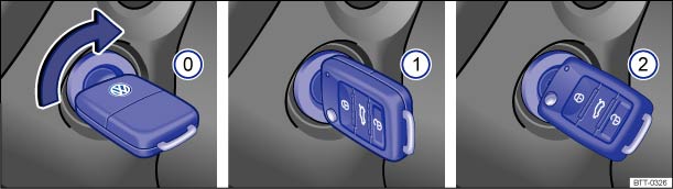 Ignition switched off. Steering column lock engaged. The vehicle key can be removed.