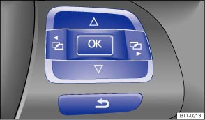 Fig. 15 Right side of the multi-function steering wheel: Controls for the menus and information in the instrument cluster display.