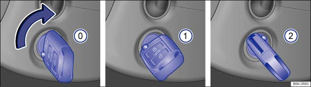 Ignition switched off. Steering column lock engaged. The vehicle key can be removed.